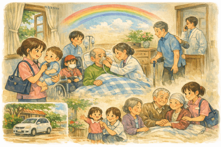 HOME 東ヶ丘訪問看護ステーション 利用対象者 🌈 どなたでも利用できます 訪問看護は、病気や障がいの軽い方も重い方も、 「必要だな」と思ったすべての方が利用できます。 年齢や病状にかかわらず、 ご自宅で安心して過ごせるよう、看護師がそっと寄り添いながら支援します。